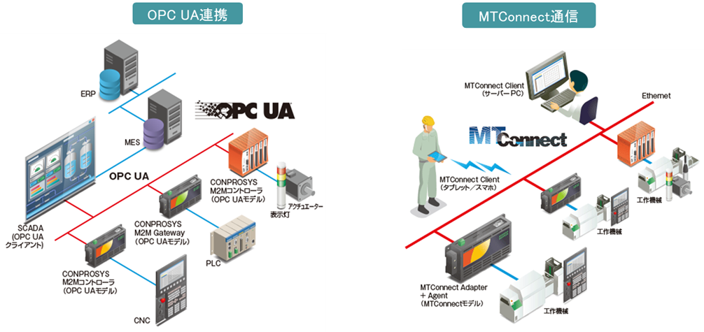 CONPROSYS IoTゲートウェイは、グローバルスタンダードのフィールドネットワーク / IoT通信プロトコロルの MTConnect、OPC