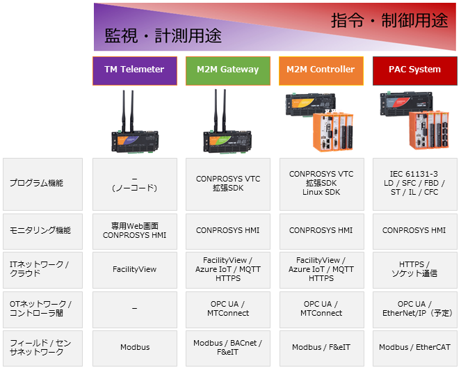 CONPROSYS IoTゲートウェイ製品の用途と機能は以下の通りである。