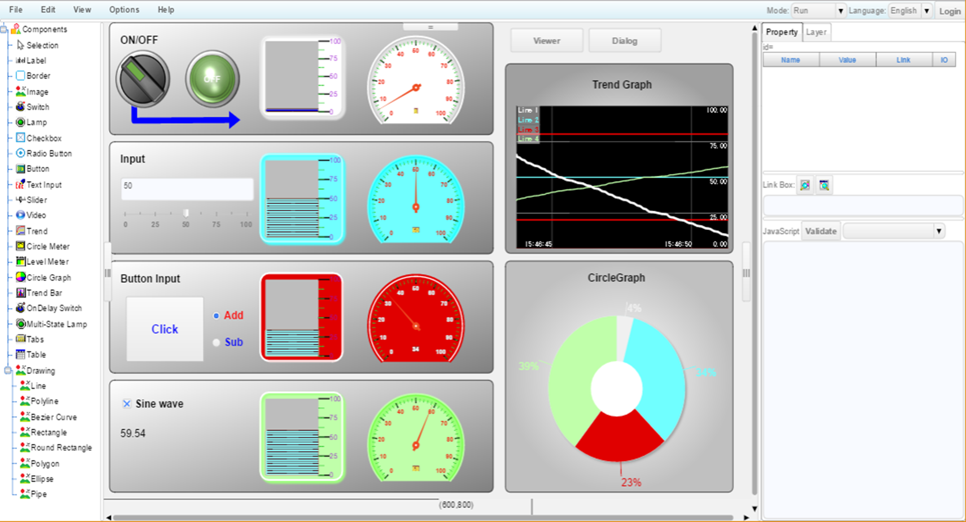CONPROSYS IoTゲートウェイなら広大な画面スペースに多数の表示部品を配置して表示できる。